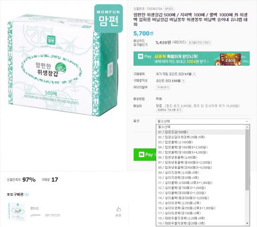 [네이버] 맘펀한 위생장갑 500매 (5700원 무료배송)