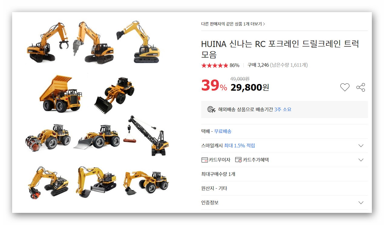 [옥션] HUINA 신나는 RC 포크레인 드릴크레인 트럭 모음 (29800~/무료)