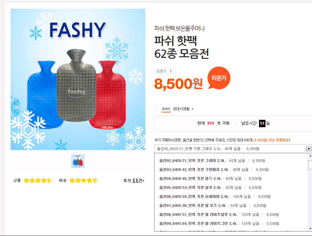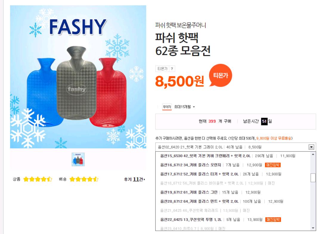 파쉬 보온물주머니에요. 전 모던하우스에서 2개 15900원에 팔던거 사서 잘 쓰고있습니다.