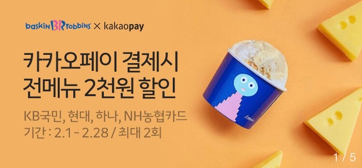 카톡 주문하기에서 배스킨 패밀리 -4500 할인하고 있습니다.