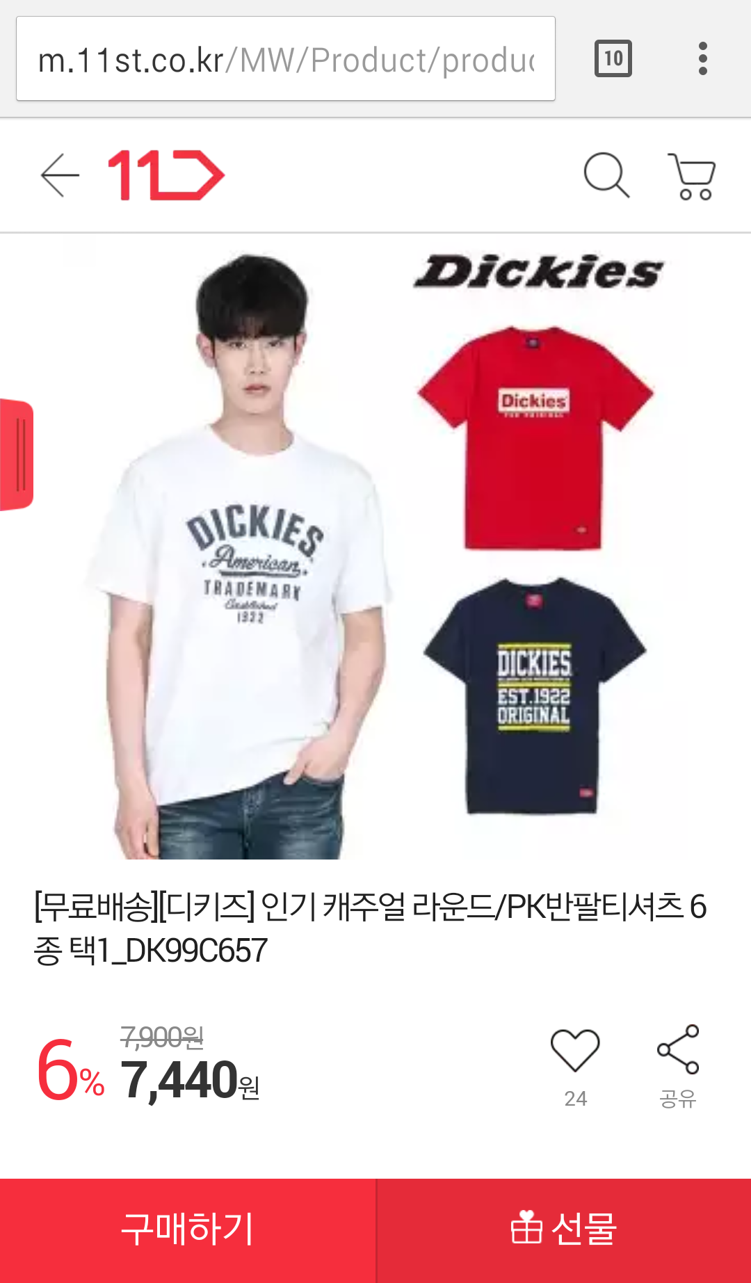 [11번가] 디키즈 라운드반팔티(7,440/무료) > 이건어때