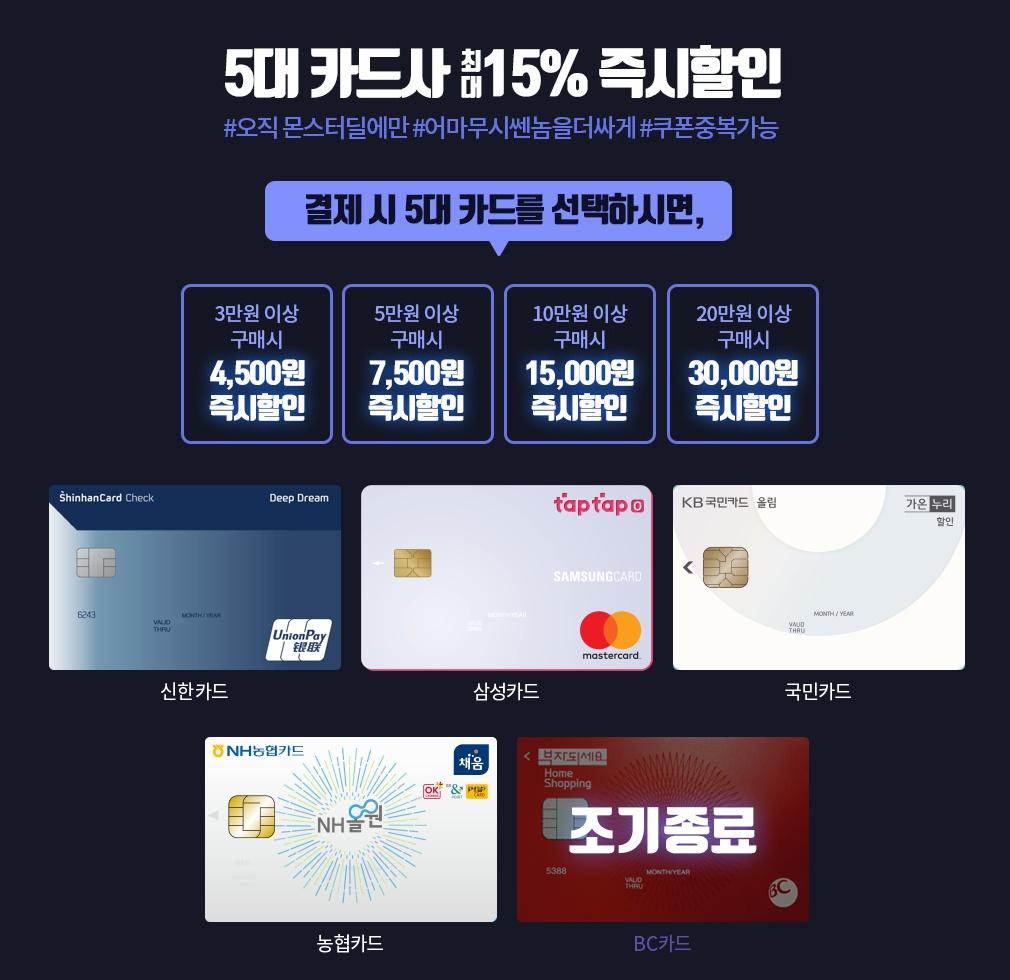 나와있는 카드로 결제시 추가 15000원 자동할인되서 약 174000원에 구매가능하며 추가로 티몬 적립금 5000원도 5