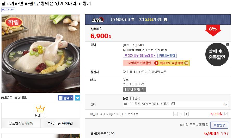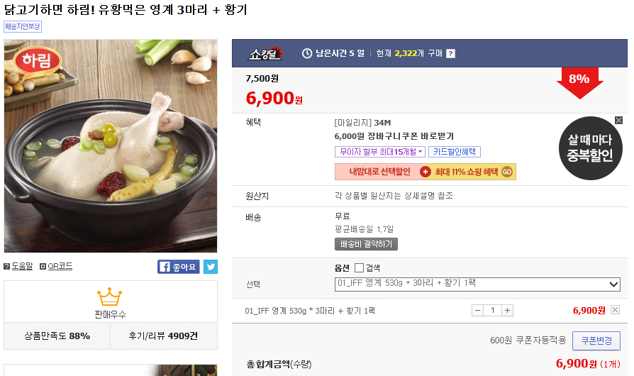 가격이랑 후기가 괜찮네요 ㅎㅎ 삼계탕세트 주는 선착 이벤트도 하네요
