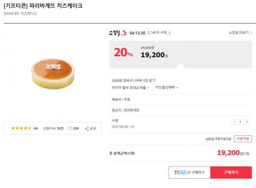 11번가에서 파리바게트 기프리콘을 20프로할인가에 무료배송으로 팔고있습니다. 위에 사진에 나온 4종류의 빵과