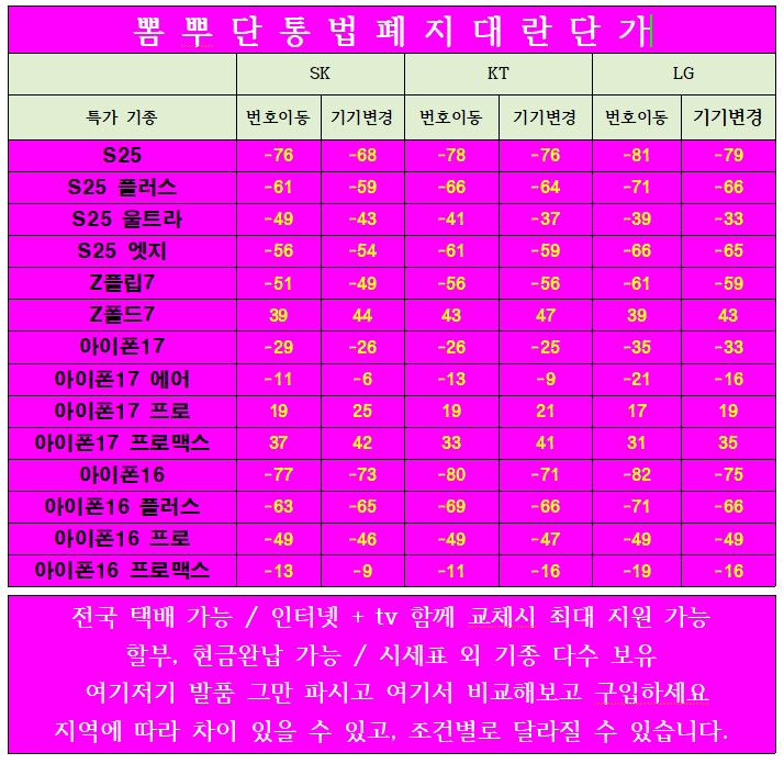 #지원금 대란 시세표 [ 단통법 폐지 ] > 통신업체