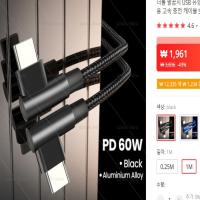 [알리] PD 60W USB C 타입 충전케이블 90도 (1,961원/무료)