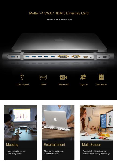 Ugreen Multi all-in-1 USB 3.0 to HDMI DVI VGA Video & Audio converter adapter USB 3.0 HUB with Card Reader and Ethernet Adapter
