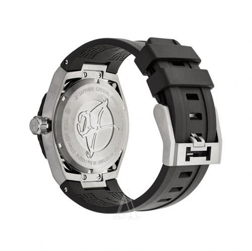 다이버 베젤에 러버를 사용해서 양각으로 잠수시간 표시를 하였습니다. 뒷판은 가오리 문양 스틸백입니다.