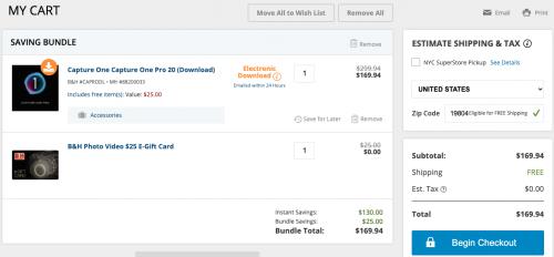 1센트 저렴하고, B&H의 E 기프트 카드 25불이 사은품으로 제공됩니다.