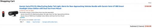 가민의 자전거용 후미등, 바리아 RTL510과 전조등, 바리아 UT800 세트 상품입니다.