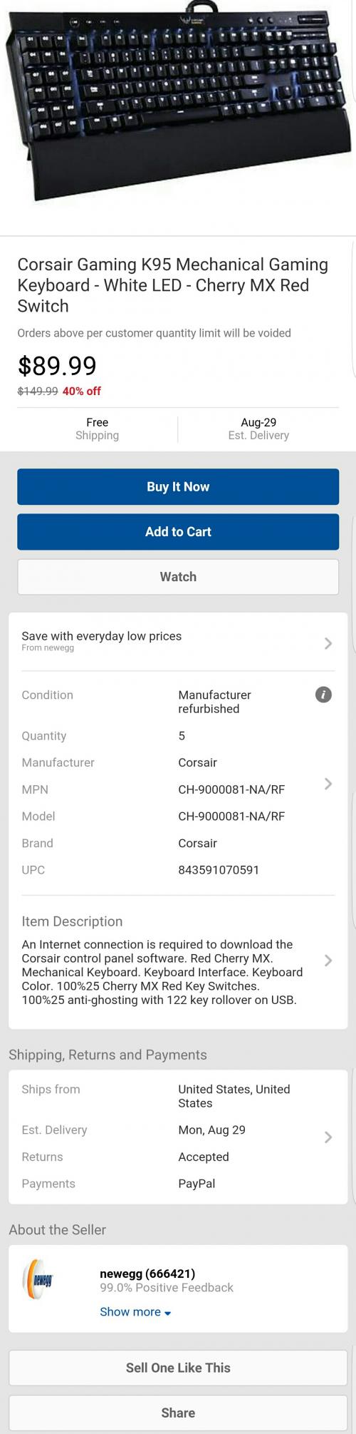 참조 1. 이베이가 아닌 뉴에그 사이트 직링크도 첨부합니다. https://m.newegg.com/Product/index?itemnumber=N82E16823816072