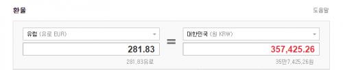 최종 결제 예상 금액이 EUR 281.83 이네요~ | ||