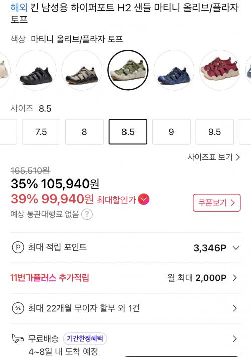 [11마존] 킨 남성용 하이퍼포트 H2 샌들 (105,940원/무료)