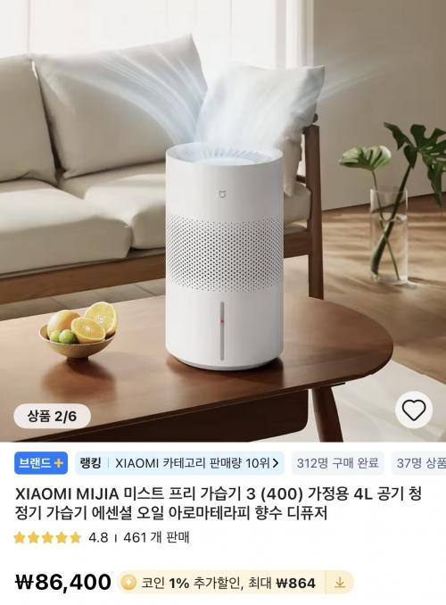기화식 아니고 물 끓여 살균하는 4L 가열식 가습기입니다.