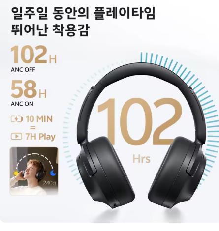 [알리] QCY H3S -56dB 어댑티브 ANC 오버이어 헤드폰 (42,588원/무료)