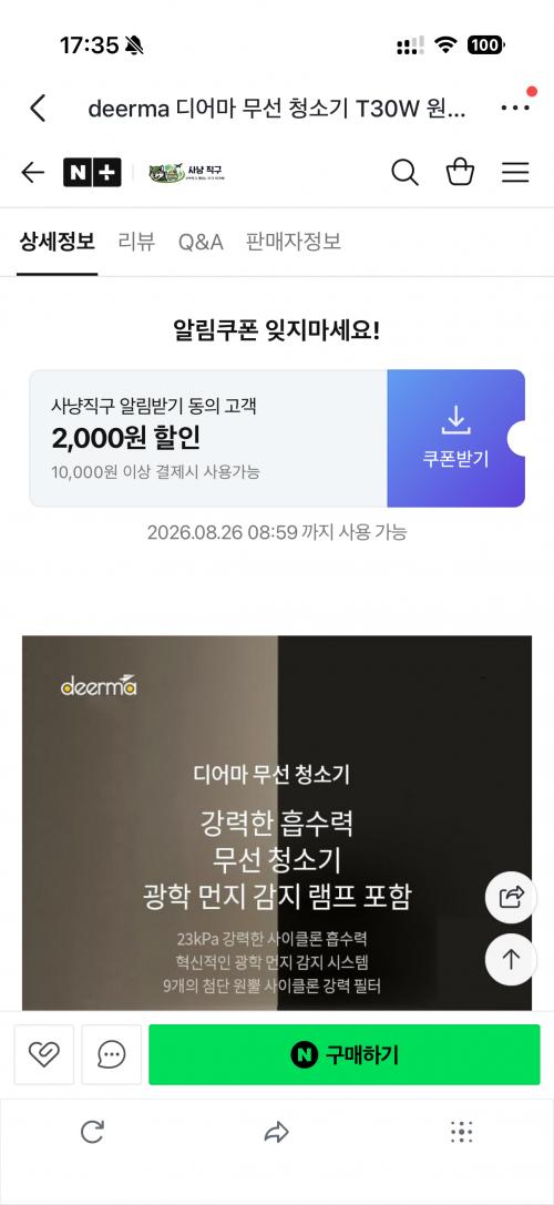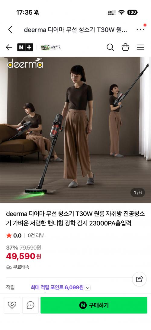 [naver] deerma 디어마 무선 청소기 T30W 원룸 자취방 진공청소기 핸디형 광학 감지 23000PA흡입력 (할인49,490원/무료) > 해외핫딜