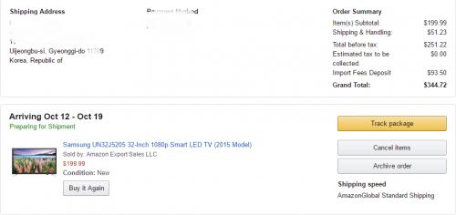 200불 이내이므로 국내 직배하셔도 관부가세 발생없으며 금일 고시환율 기준으로 276,000원 정도 나오겠네요