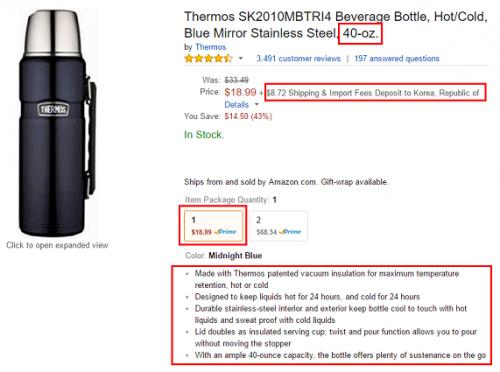 몇주 전 16oz짜리 15불에 샀었네요. 참고로 의미없는 국내 판매가 쿠폰 먹여도 55,00원 정도 나옵니다.