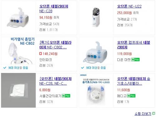 참고로 '오므론 네블라이저'로 찾으니 국내 가격은 이렇습니다.