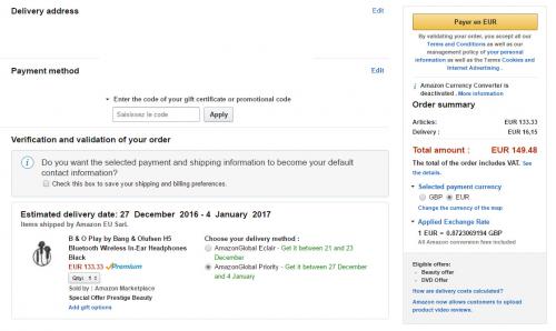159.99 유로인데 직배선택시 부가세가 빠져서 133.33유로가 되고 직배비는 16.15유로입니다.
