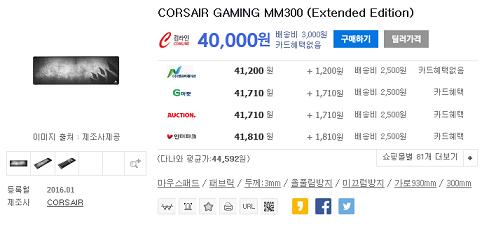 - 다나와 비교 : http://prod.danawa.com/info/?pcode=3678862&keyword=커세어 마우스 패드