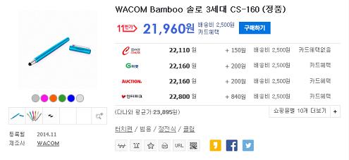 - 다나와 비교 : http://prod.danawa.com/info/?pcode=2869507&keyword=WACOM Bamboo 솔로 3세대 CS-160