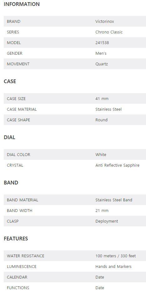 작년에 샀던 모델이 241538 이었고 같은 모양에 밴드만 메탈입니다. (아래 메탈밴드 사진)