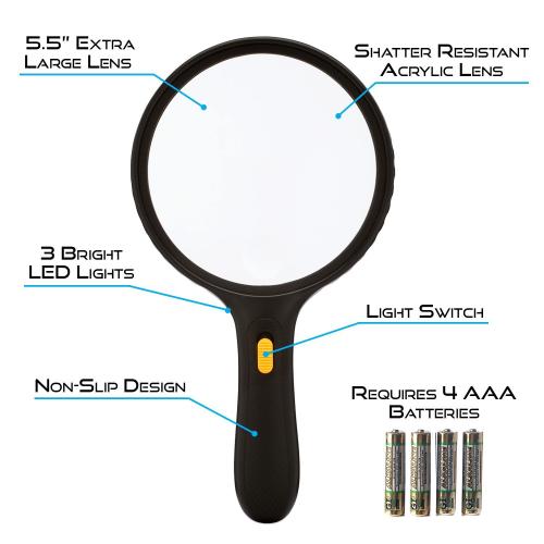 LED 2X Magnifier- HUGE 5.5 inch Lens with 5X Zoom Window $3.99