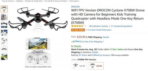 [아마존] 싸이클론드론 X708W (38.99/프라임무료)