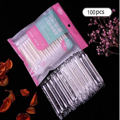 Individual Packaging Makeup Cotton Swabs Non-Sterile with Wooden Handles Cotton Tipped Applicator 100 pcs/Pack for Christmas Gift $1.02