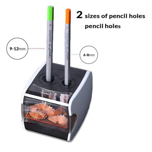2구 전동 연필깎이 입니다. 날 교체가 가능하며 유선, 무선 전원이 가능합니다.