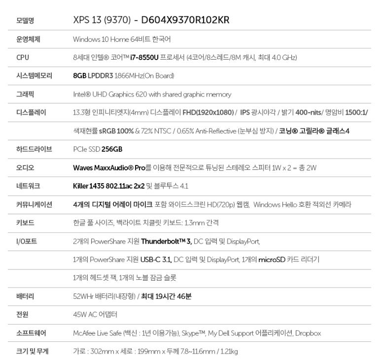 램8기가는 온보드라 확장안되지만 XPS13 용도를 따지면 그닥 단점은 아니라고 봐용.^^