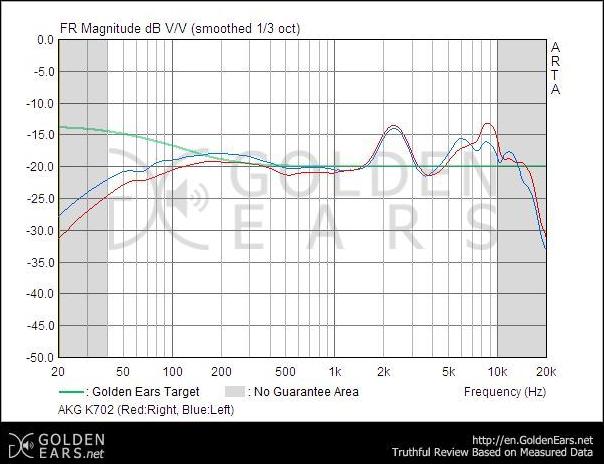 아래는 골든이어스에서 측정한 K702 주파수 특성입니다. (MC민지님의 블로그에서 가져왔습니다.)
