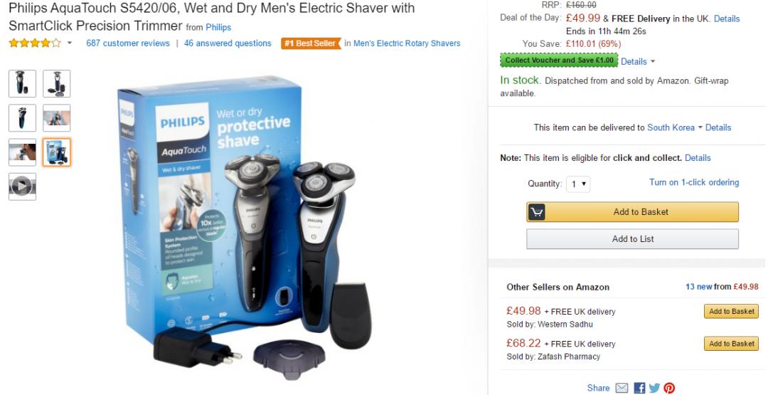 파운드로 하니 한국까지 직배시 54.76 (네이버 환율로 계산하면 80,332원 정도)