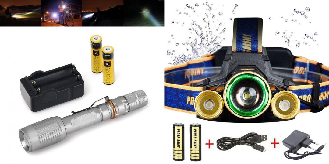 플래시라이트 혹은 헤드랜턴과 18650 2개, 충전기 셋트 입니다.