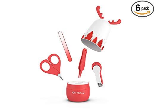 Baby Manicure Set by ARRNEW | 4-in-1 Grooming Kit with Deer Case, Nail Clipper, Scissor, File & Tweezer | Baby Nail Care Kit for Newborn, Infant & Toddler | Safe and Comfortable | (Red) $3.20