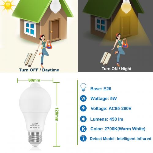 [amazon] Motion Sensor Light Bulb 5W Smart LED Bulbs PIR Detector Lamp Pack of 4 ($4.99/prime fs)