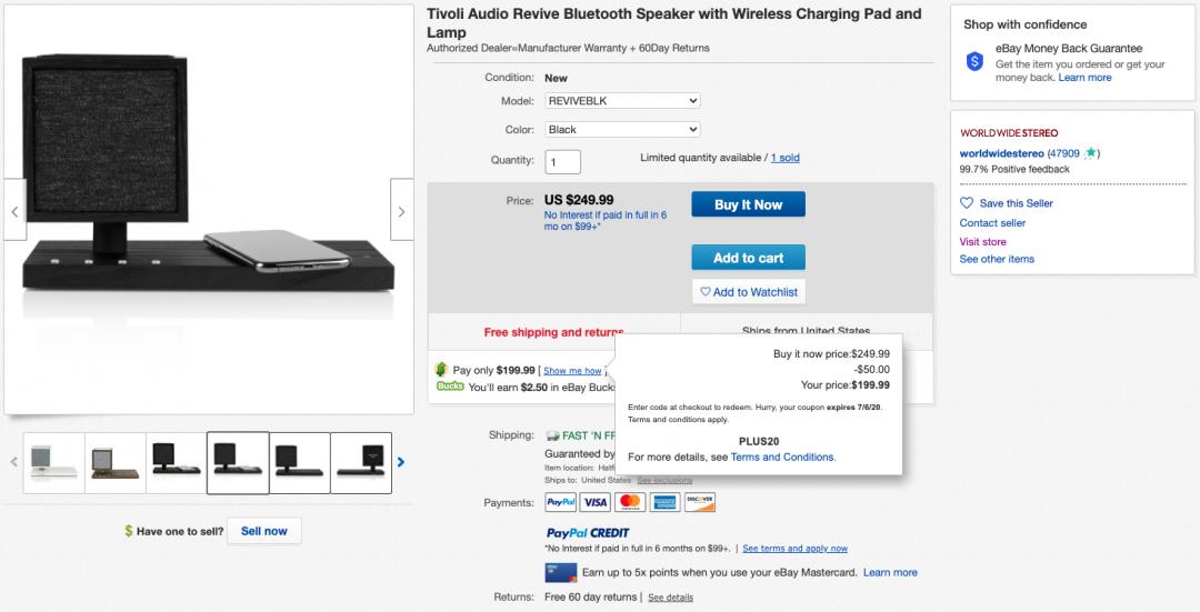 [eBay US] Tivoli Audio Revive Bluetooth Speaker ($199.99 / 미국내 무료배송) > 해외핫딜