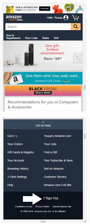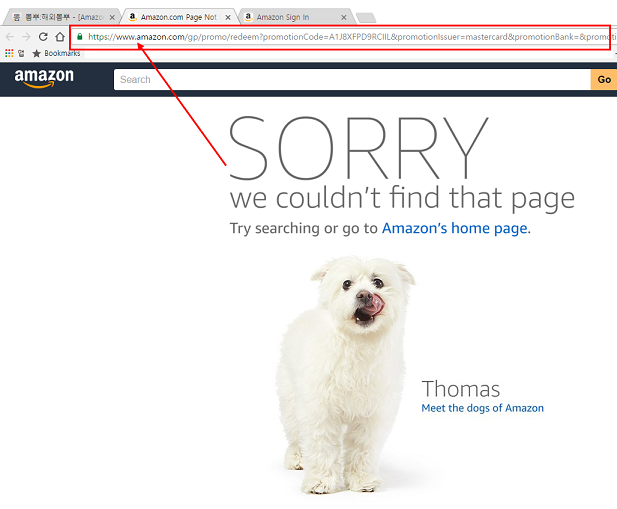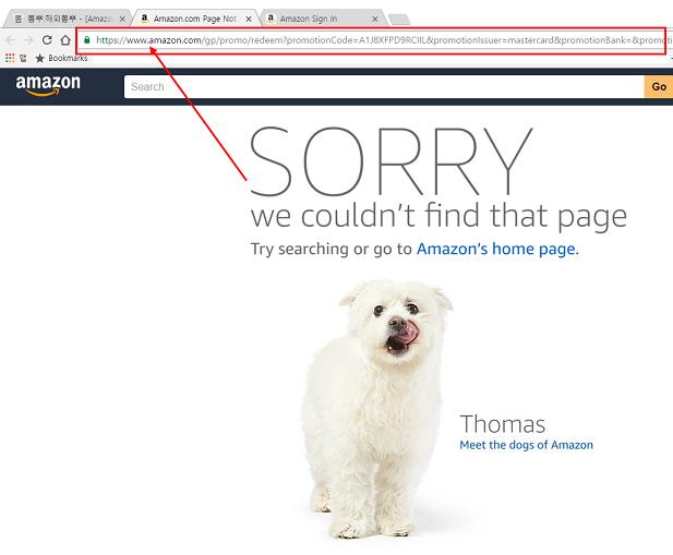 에러난화면(위 2번) 주소창의 주소를 복사하여, 지금 아마존 sign out 시킨 크롬주소창에 복붙 하세요