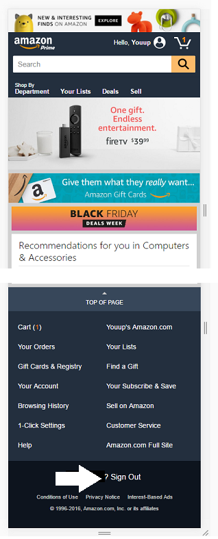 4. 다음과 같은 아마존 화면이 뜨면 제일 하단으로 내려가서