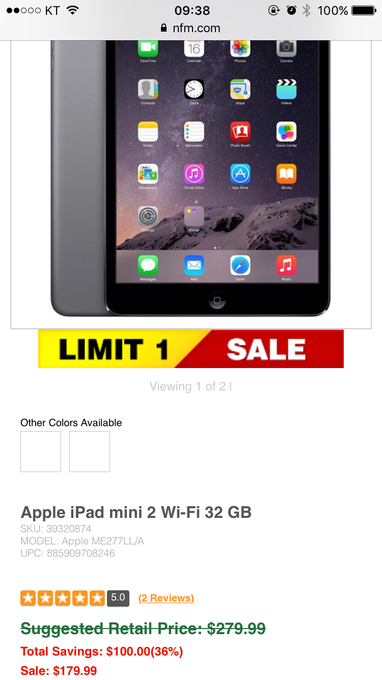 [nfm] ipad mini 2 32gb ($180/무료) > 해외핫딜