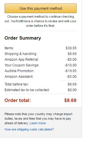 여기에 뭐 오더블 + 어시스턴트 + 앱친구추천 등 하시면 최저 8.69불까지 내려가네요