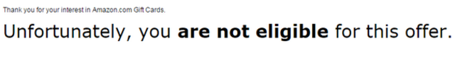 Unfortunately, you are not eligible for this offer.