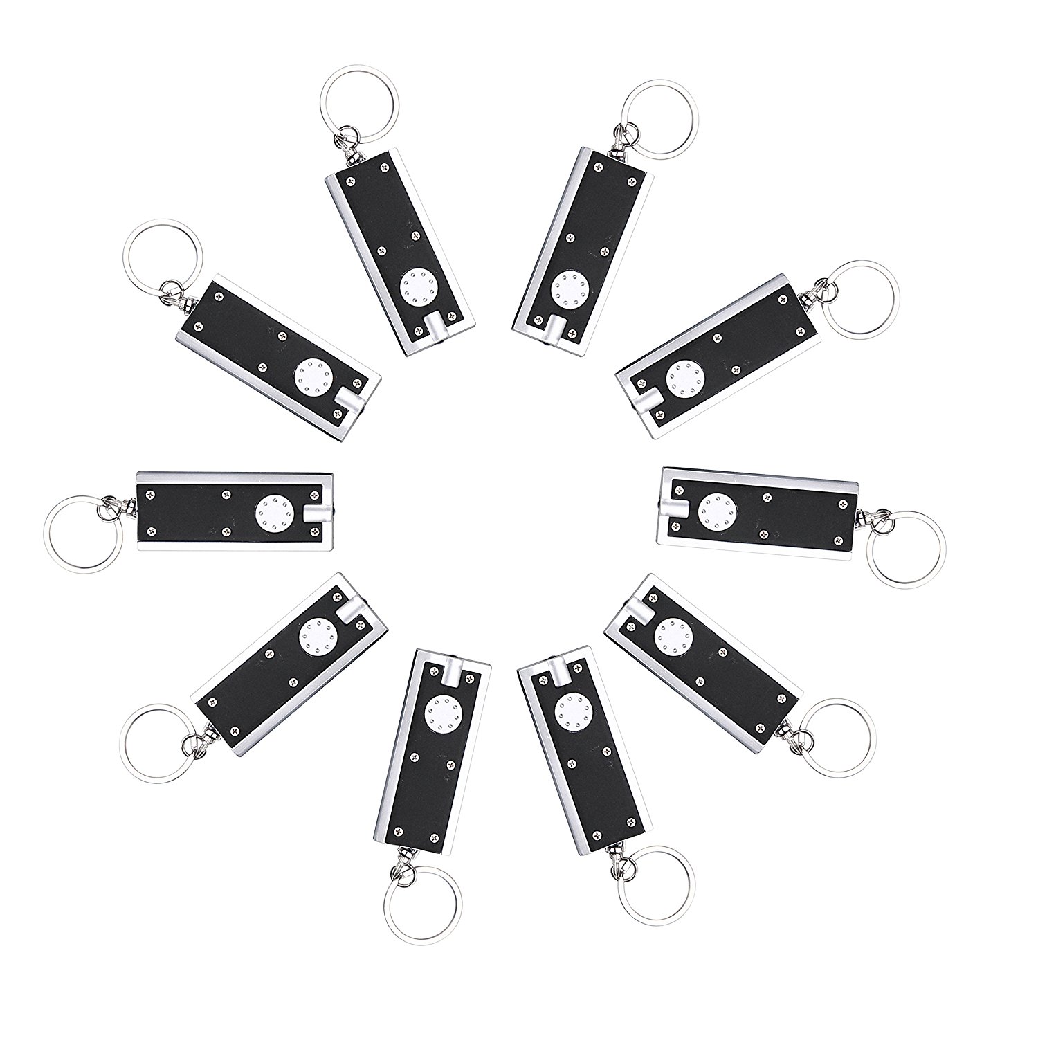열쇠고리 모양에 LED 한발 들어간 플래시라이트 10개 1세트 입니다.