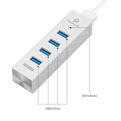 알미늄 재질의 4포트 USB 3.0 허브이며,