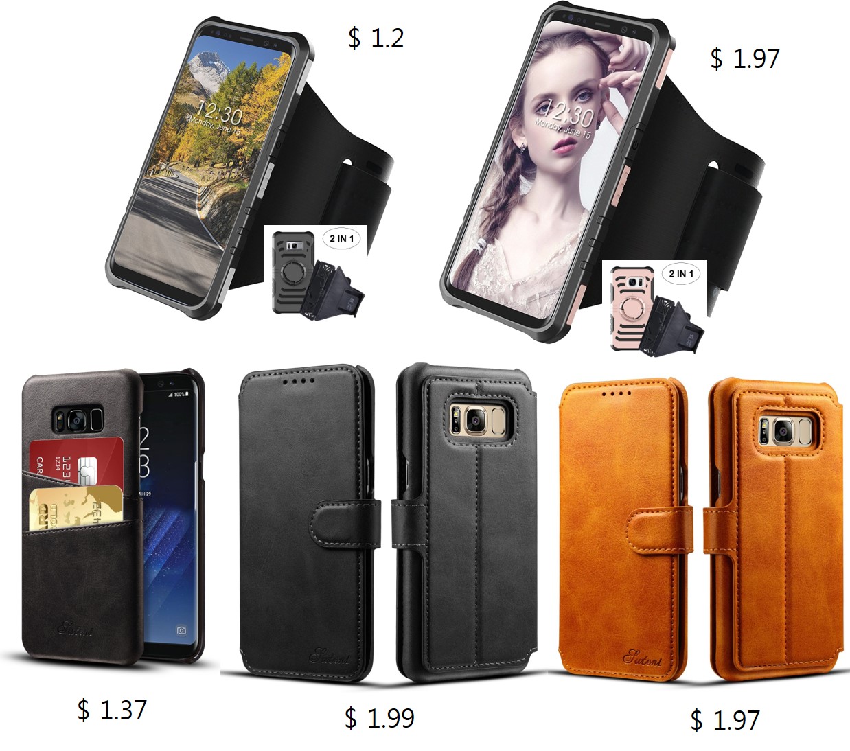1. 갤럭시 S8 전용 암밴드 장착식 2 in 1 하드케이스 (블랙 $ 1.2 / 로즈골드 $ 1.97)