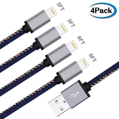 Phone Charger Cable, Verbulan 4 Pack [ 3FT 3FT 6FT 6FT] Denim Braided Compatible iPhone X/8/8Plus/7/7Plus/6/6Plus/6s/6sPlus/5 iPad iPod and More - Blue $5.20