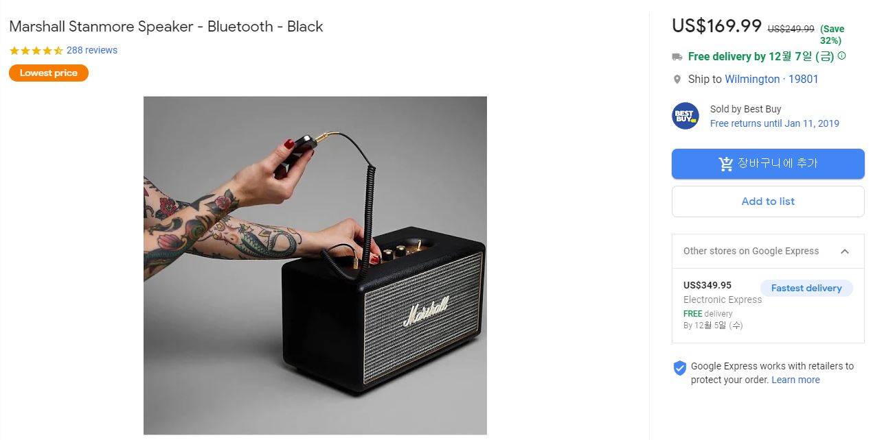[구글익스프레스] Marshall Stanmore Speaker - Bluetooth - Black (169.99/미국내무료) > 해외핫딜
