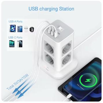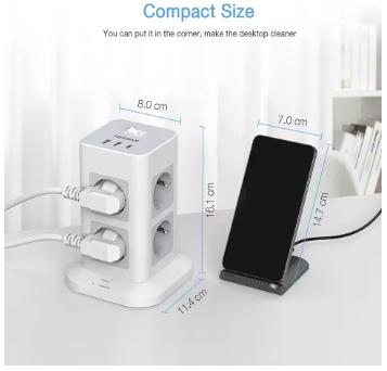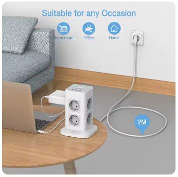 [알리익스프레스] TESSAN 타워 전원 스트립 멀티 콘센트(2개의 USB +1 유형 C 2M 연장 케이블 포함) / ($15.39 /무료) > 해외핫딜
