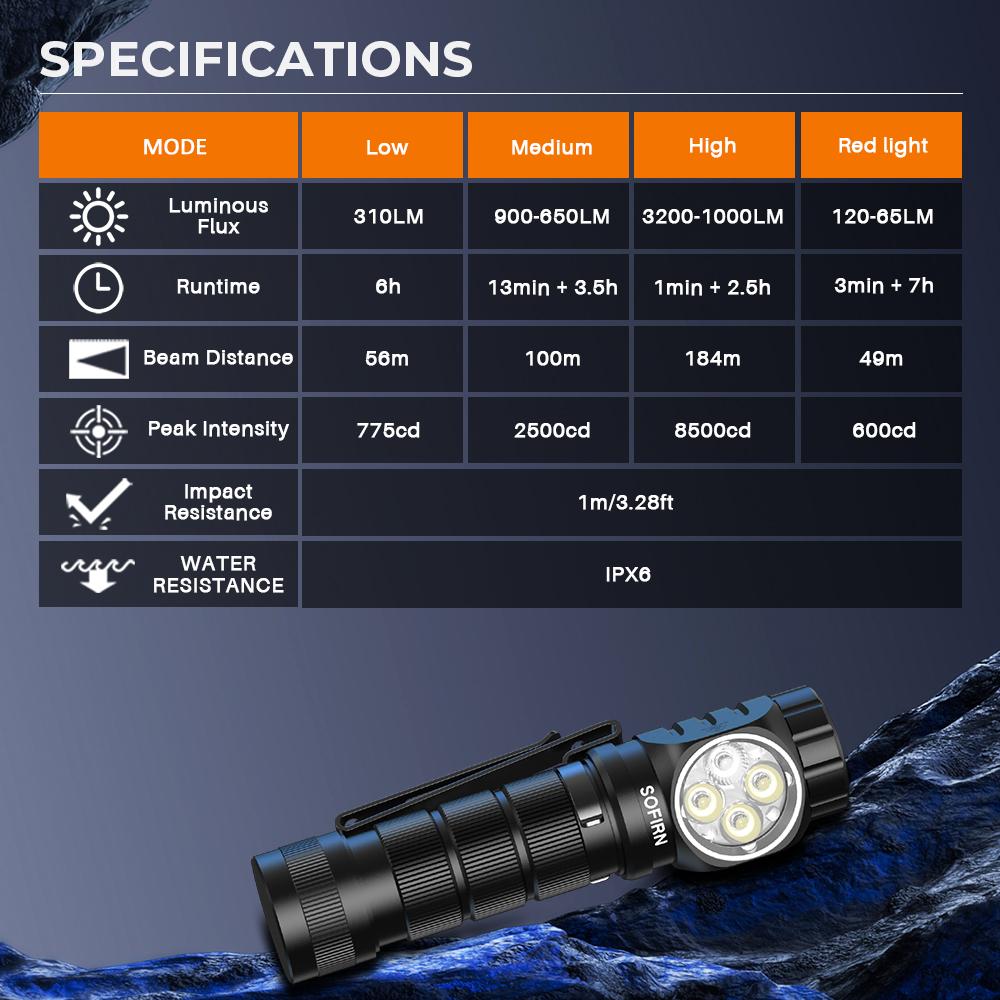 SOFIRN HS43 3200lm Headlamp Red Light 660nm 21700 USB C Rechargeable Flashlight with Magnetic Rotary Control Ring for Outdoor